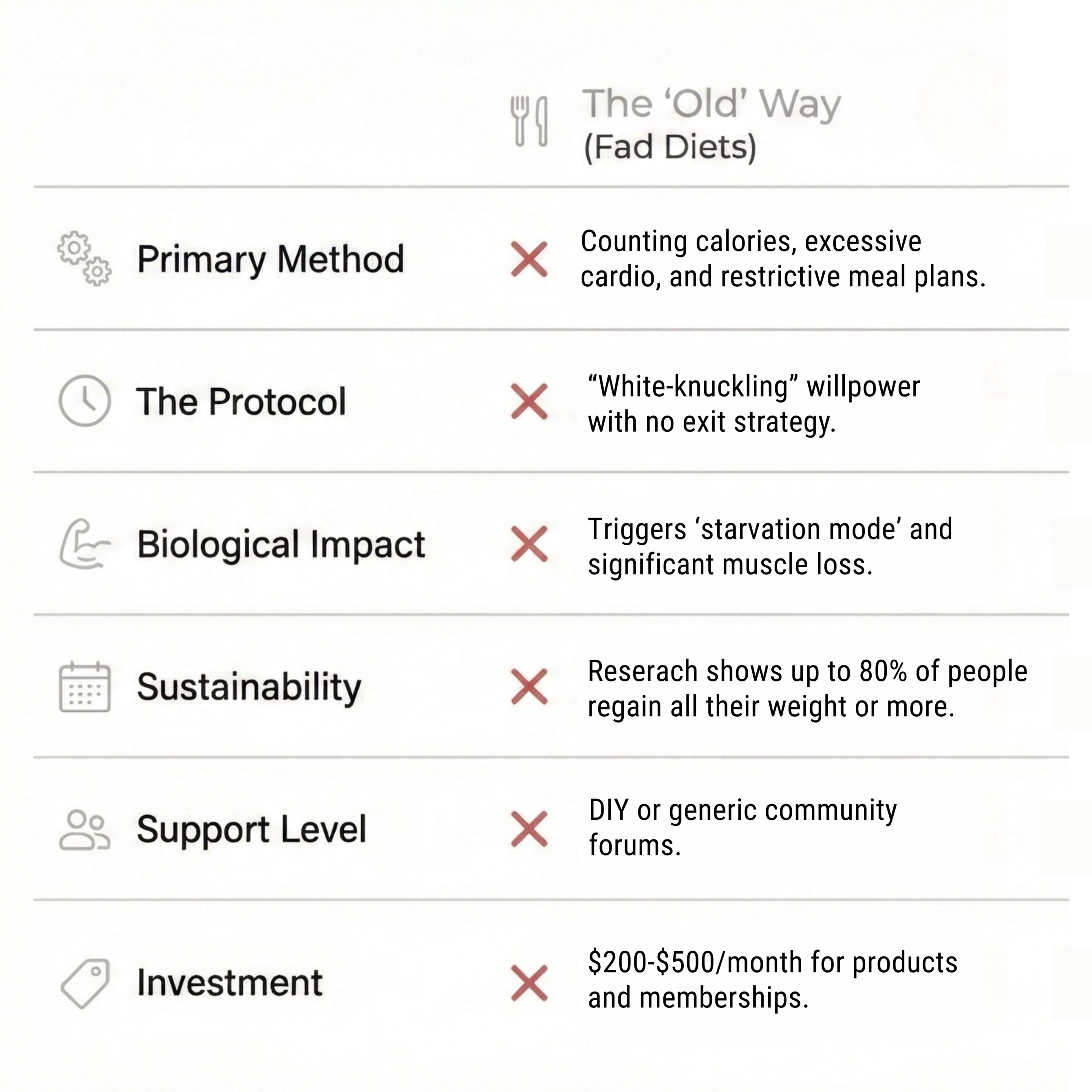 * Clinical Data on Weight Maintenance: Long-term studies, including meta-analyses from UCLA (Mann et al.) and the National Institutes of Health (NIH), consistently show that 80% to 95% of individuals who lose weight through conventional dieting regain it within two to five years. This is largely attributed to metabolic adaptation and hormonal shifts that increase hunger and decrease satiety. In contrast, the National Weight Control Registry tracks over 10,000 “successful maintainers” who have kept off an average of 66–70 lbs for over five years by focusing on permanent physiological shifts rather than short-term restriction.