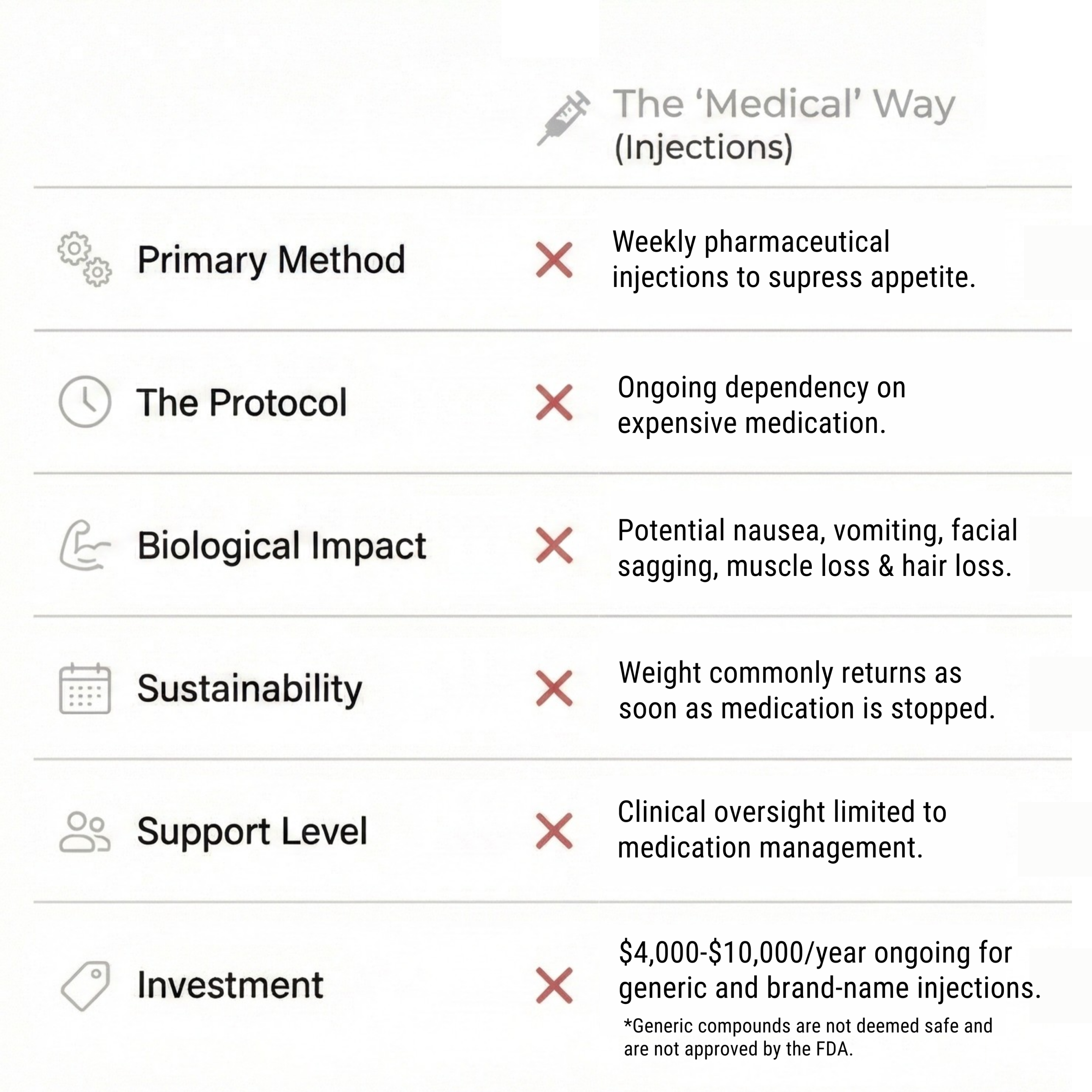 Melt fat and switch off ‘storage-mode’ using targeted nutraceuticals and real food– no starvation, no willpower battles, and no lifetime injections.